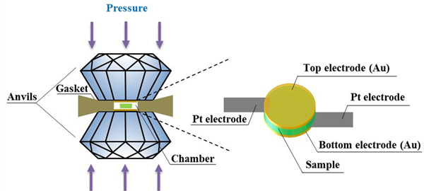 HfO2作为一种具有良好互补金属氧化物半导体兼容性的铁电材料,在半导体存储器、低功耗逻辑器件等领域具有广泛的应用前景。研究表明,HfO2在常压下没有铁电性,通过应变或掺杂等方式可诱导其转变为非中心对称的正交相,从而产生铁电性,这说明其铁电性与晶体结构密切相关。高压是调控材料结构、研究构效关系的有力手段。然而,目前对于HfO2在低压区是否存在结构相变仍存在争议,尤其是通过高压拉曼光谱和高压X射线衍射光谱两种实验技术得到的结论存在冲突,这阻碍了对HfO2的结构和物性的进一步理解。因此,研究团队引入了另一种高压实验技术——电输运,同时结合高压拉曼光谱实验和第一性原理计算,对HfO2在低压区的相变给出了明确解答。