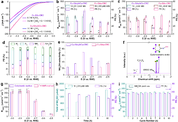 固体所动态重构强相互作用的铜单原子与原子团簇位点以实现选择性电化学合成羟胺