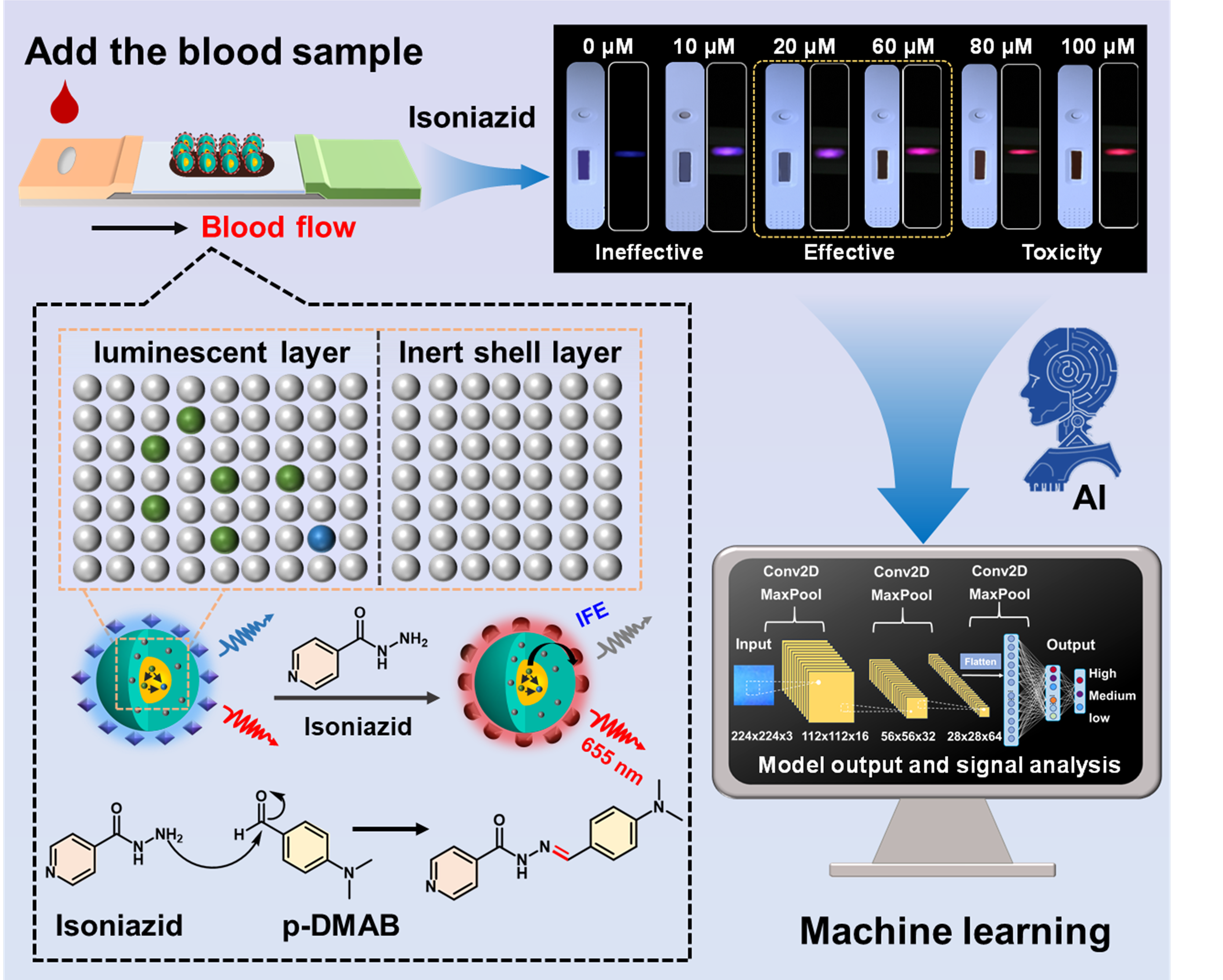图1. 上转换探针结合智能手机-CNN分析对全血中异烟肼的超灵敏独立检测。